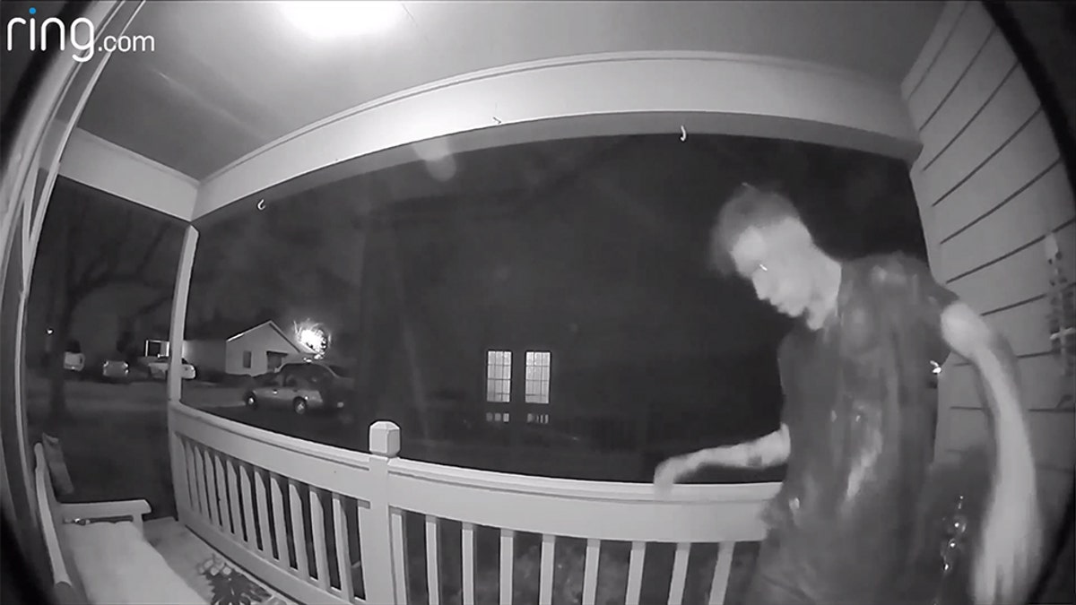 The woman said she was baking Christmas cookies at home when she heard a bang on the door, then noticed the man outside. She said she'd just installed the surveillance system two days beforehand.