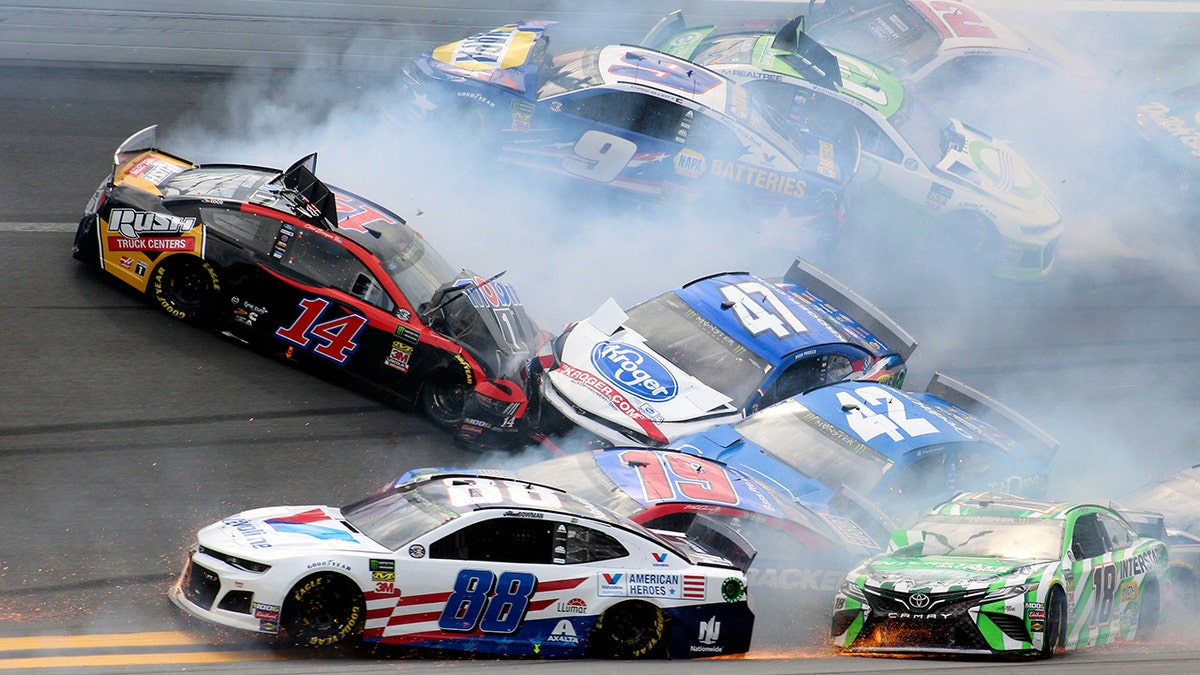 A 17-car pileup gave Haley the lead just before the race was suspended, and he had to wait 2 hours and 12 minutes until he was declared the winner.