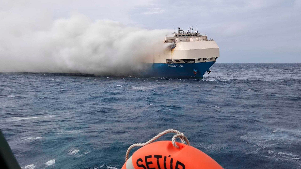 The Portuguese navy rescued all 22 crew members onboard the Felicity Ace after it caught fire on Feb. 16. (https://www.foxnews.com/media/allen-west-texas-dems-vacationing-portugal)