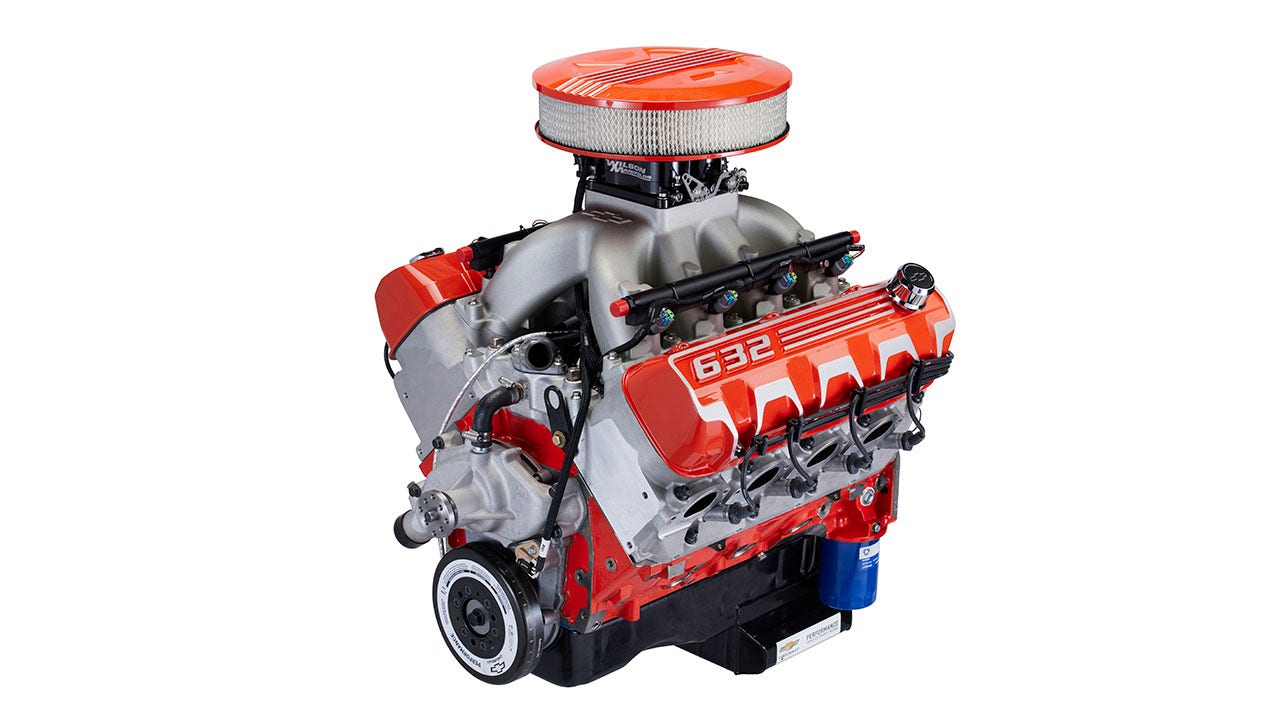 The iron-block ZZ632/1000 was designed with a redline of 7,000 rpm and features electronic port injection fed through symmetrical ports built into its CNC-machined aluminum head, forged aluminum pistons along with a forged steel crank and connecting rods. Chevrolet said a single engine was subjected to 200 simulated runs during development without issues.