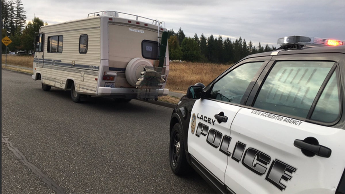 The 22-foot Winnebago was spotted by Lacey police on Saturday morning about 35 miles from where it was stolen from a sporting goods store parking lot in Federal Way on Friday, after media reported on the missing truck.