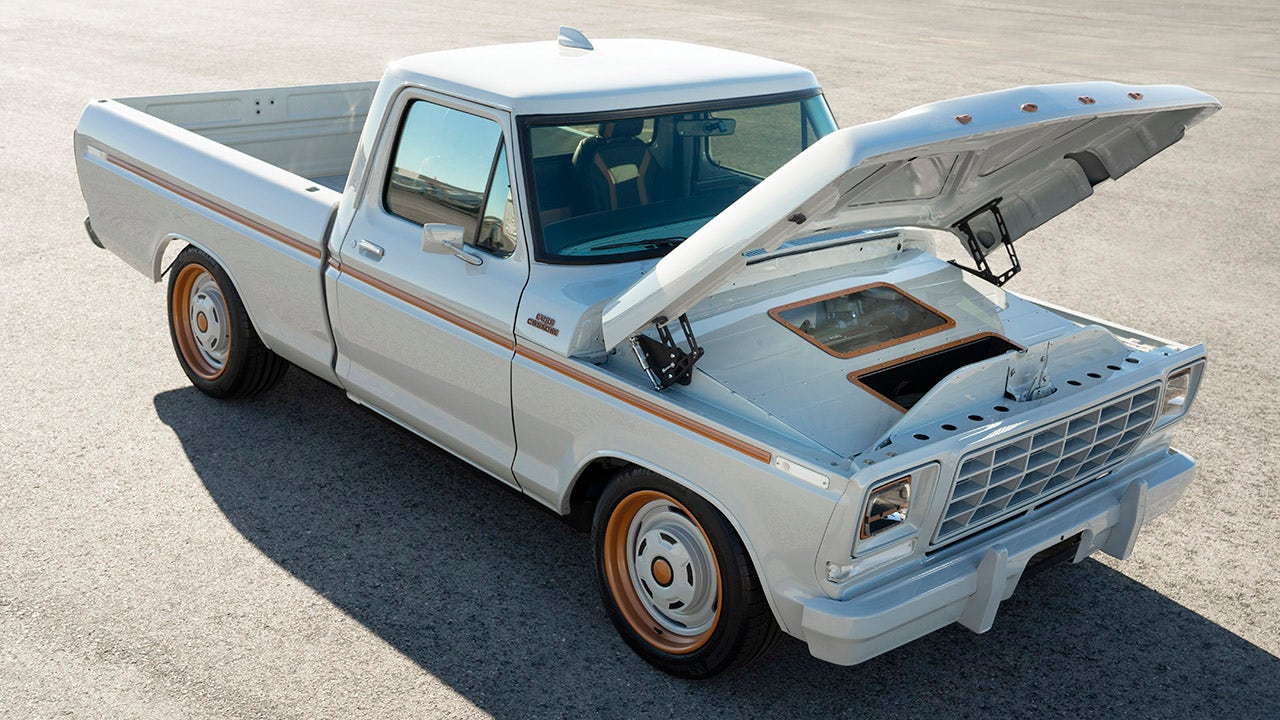 For the F-100 build, which made its debut at the SEMA (Specialty Equipment Market Association) Show in Las Vegas, Ford borrowed the 88 kilowatt-hour battery and required electronics from a Mustang Mach-E.