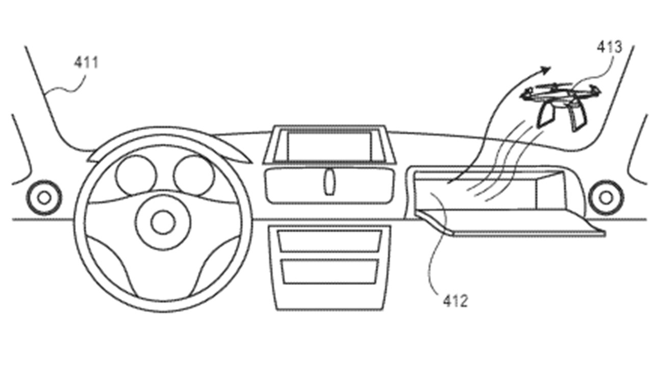 The car can automatically open the glove compartment and lower a window for the drone to fly out, circle around the car taking pictures and either send them back to headquarters or use artificial intelligence to recognize damage and summon immediate help itself, if necessary.