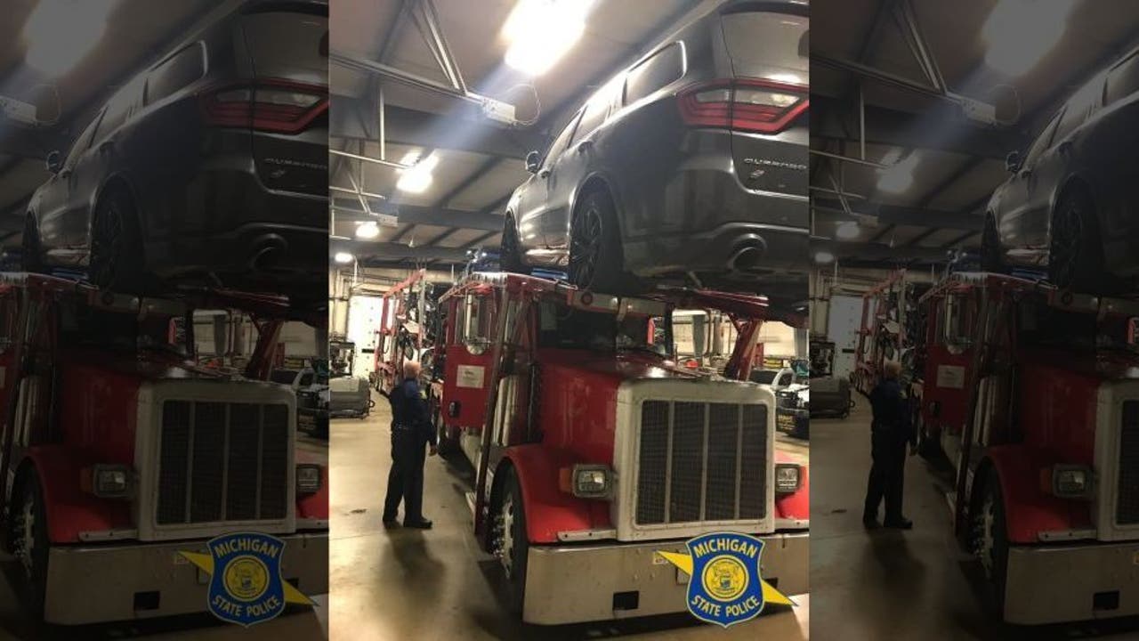 Michigan State Police located several stolen vehicles onboard a car hauler being towed by a semi-truck.