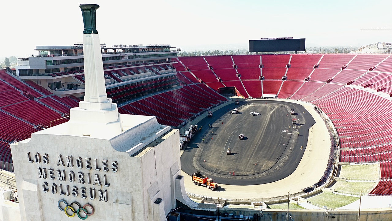 Construction of a quarter-mile track inside the L.A. Memorial Coliseum is underway. (NASCAR)