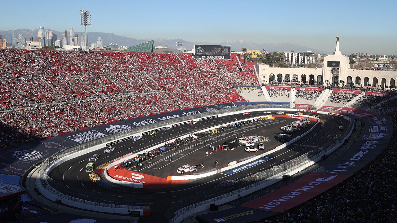 LOS ANGELES, CALIFORNIA - FEBRUARY 06: Drivers race during the NASCAR Cup Series Busch Light Clash at the Los Angeles Memorial Coliseum on February 06, 2022 in Los Angeles, California. (Photo by Meg Oliphant/Getty Images)