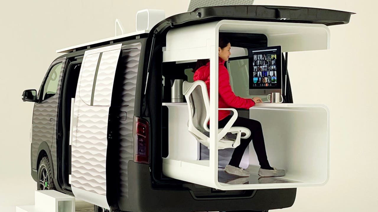 The NV350 Caravan Office Pod is a minivan with all of the comforts of your home office built into it.