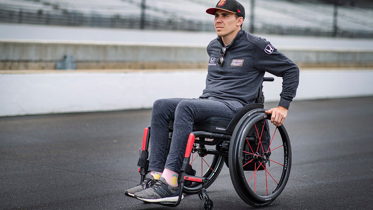 The 31-year-old Canadian was mostly paralyzed below the waist in a crash at Pocono Speedway in 2018 that fractured his spine and neck and bruised his spinal cord.