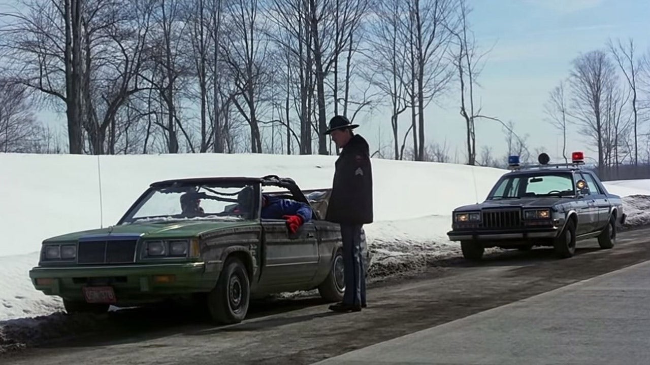 Along the way, they get behind the wheel of a green, wood-paneled convertible called the Gran Detroit Farm and Country, which was based on a 1986 Chrysler LeBaron Town and Country. The car features the same look as another iconic movie car: the Wagon Queen Family Truckster featured in “National Lampoon's Vacation,” which was written by Hughes.