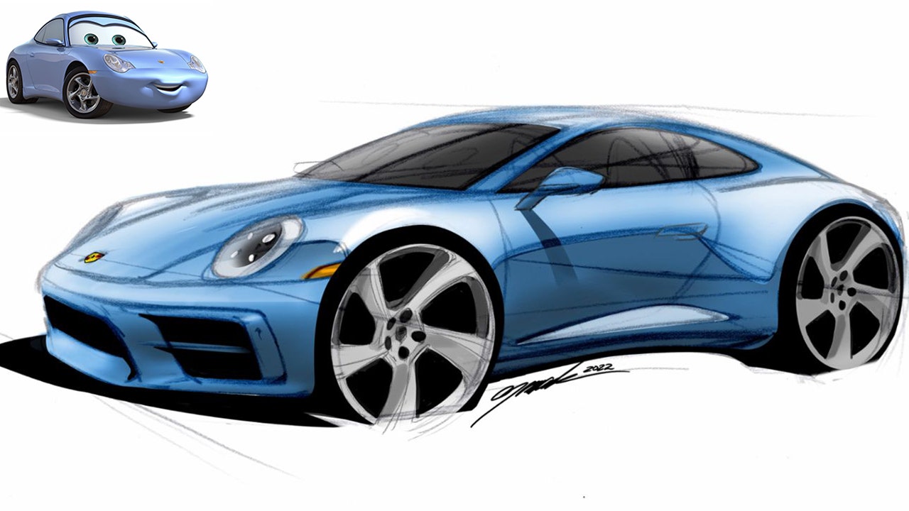 A 911 inspired by the cartoon character Sally from "Cars" will be auctioned to help support humanitarian relief in Ukraine. (Porsche)