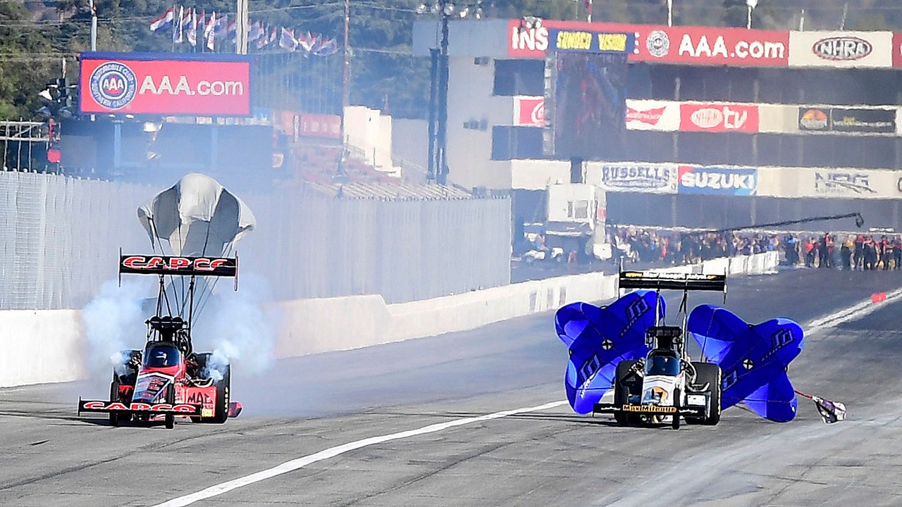 Steve Torrence beat Brandon Welch in the first round to secure his fourth consecutive Top Fuel season championship. (Will Lester/MediaNews Group/Inland Valley Daily Bulletin via Getty Images)