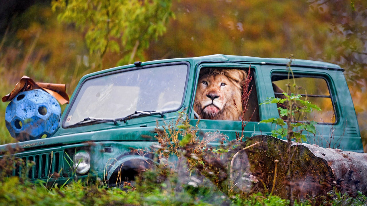 Unfortunately, for what at first appears to be the world’s laziest lion, the vehicle is inoperable and was placed in the enclosure for it to play with.