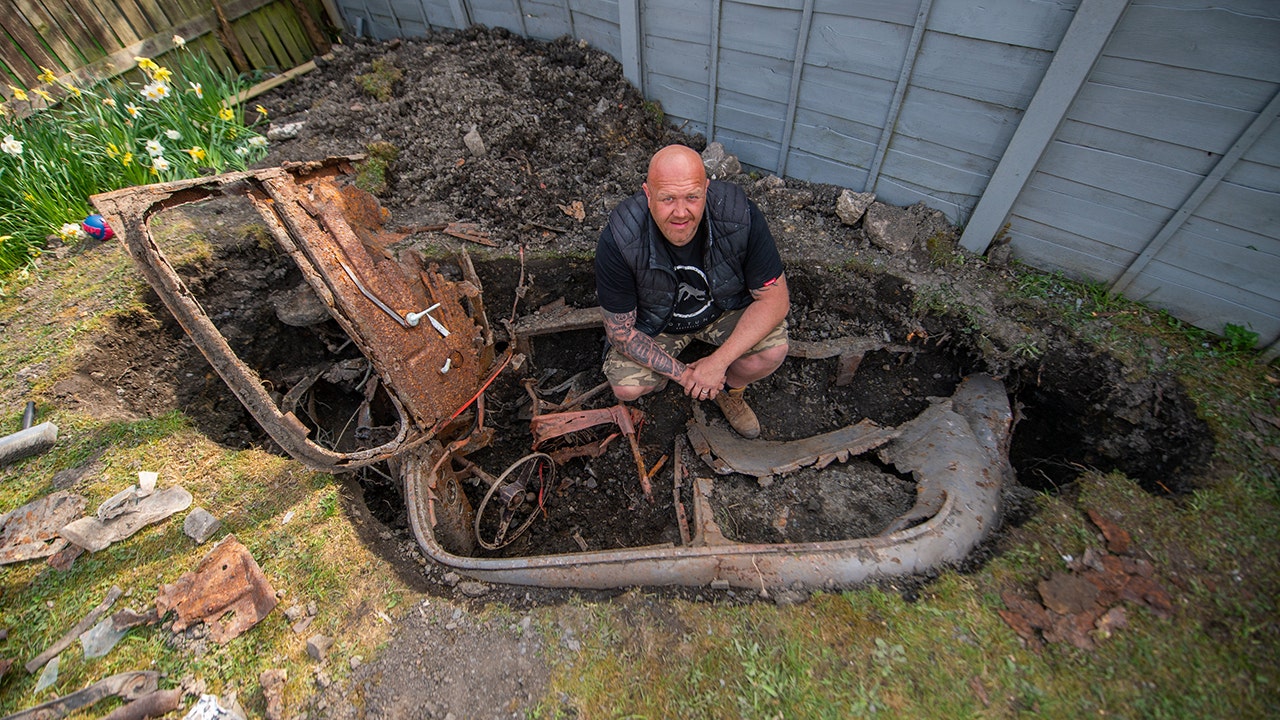 John Brayshaw of Heckmondwike, U.K. was building a deck while home on furlough from work during Britain’s coronavirus lockdown when he found a car buried in his yard. He told SWNS he’d moved into the home just six months ago and was driving a post into the ground when he made the unusual discovery.