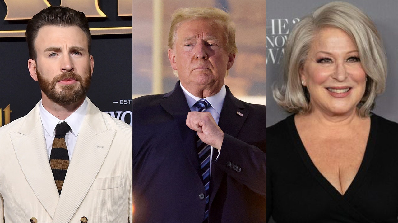 Several celebrities including Chris Evans (left) and Bette Midler (right) slammed Trump (center) for his comments after leaving medical care. (Getty Images)