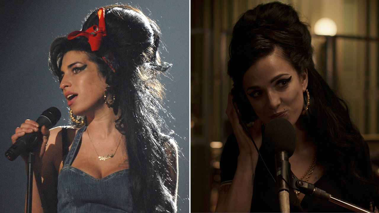 A biopic of Amy Winehouse, played in the film by Marisa Abela, right, faced several controversies ahead of its release. (Getty Images/Focus Features)