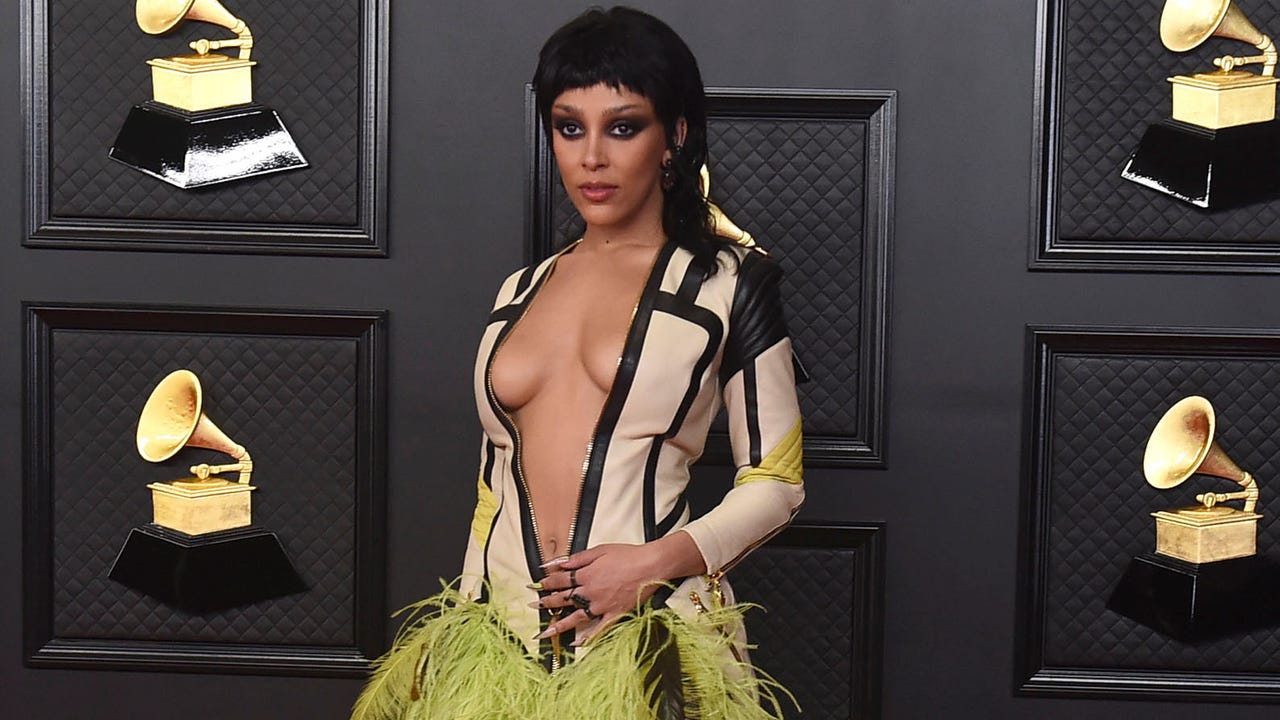 Speaking during the "Live from E!: Grammy Awards" pre-show, Doja Cat said of her look: "I'm just really excited about this because I like something that's like kind of out there.