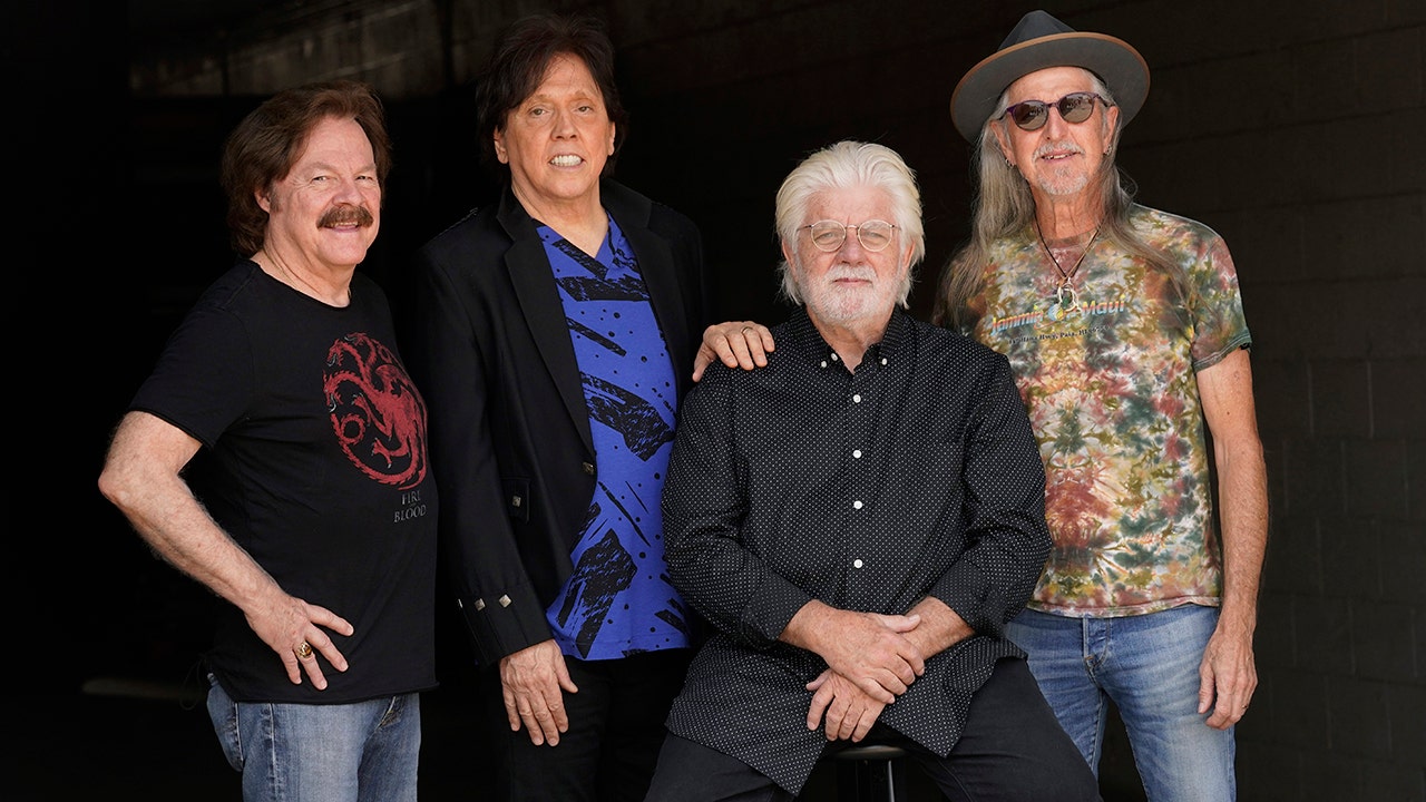 Members of the Doobie Brothers, from left, Tom Johnston, John McFee, Michael McDonald and Pat Simmons pose for a portrait at Show Biz Studios in Los Angeles on Tuesday, Aug. 17, 2021. The band has a tour and album out this fall. (AP Photo/Chris Pizzello)