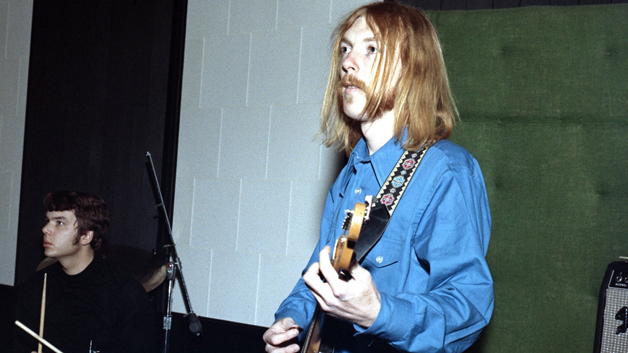 Session guitarist Duane Allman and session drummer Johnny Sandlin rehearse at FAME Studios in 1968 in Muscle Shoals, Alabama. (Getty)