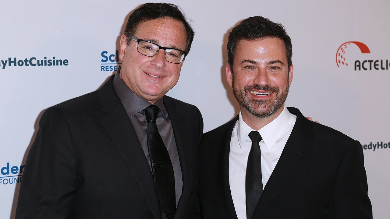 Jimmy Kimmel shared a clip of Bob Saget and John Stamos on his show to eulogize his late friend. (Randy Holmes/Disney General Entertainment Content via Getty Images)