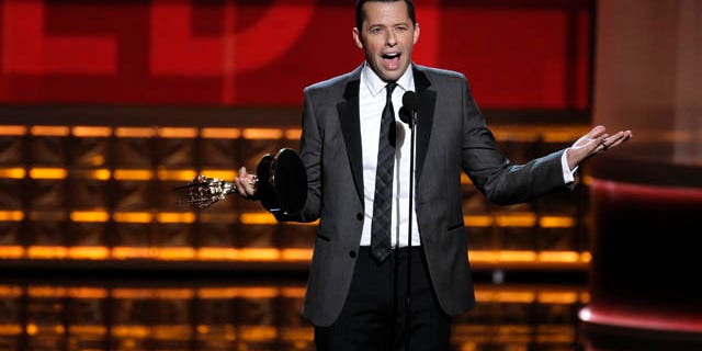 Jon Cryer accepts the award for outstanding lead actor in a comedy series for his role in "Two and a Half Men" at the 64th Primetime Emmy Awards in Los Angeles, September 23, 2012. REUTERS/Lucy Nicholson (UNITED STATES - Tags: ENTERTAINMENT) (EMMYS-SHOW)
