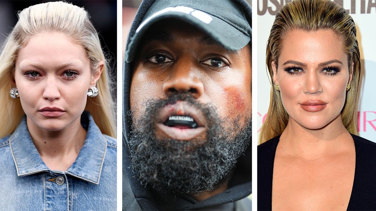 Celebrities Gigi Hadid, Khloe Kardashian and Hailey Bieber are fighting back against Kanye West. (Getty Images)