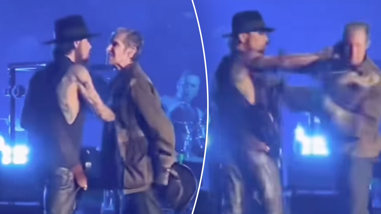 Farrell, 65, lunged his body in a forceful manner towards Navarro, 57, onstage. The guitarist appeared to place his hands on the frontman’s chest in an apparent bid to stop him from moving forward.