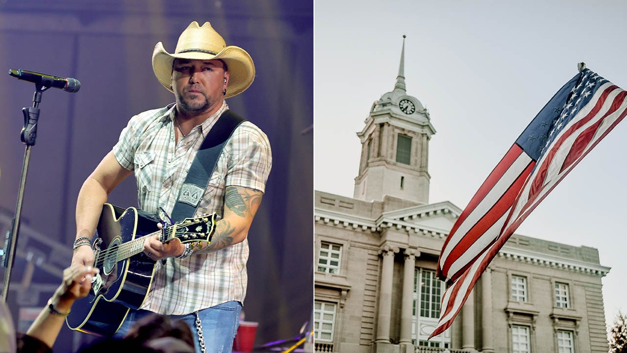 Jason Aldean sparked controversy over the filming of his music video "Try That in a Small Town" at Tennessee's Maury County Courthouse, but the production company behind it is defending the controversial location. (Getty/Destiny Seaton/Shutterstock)