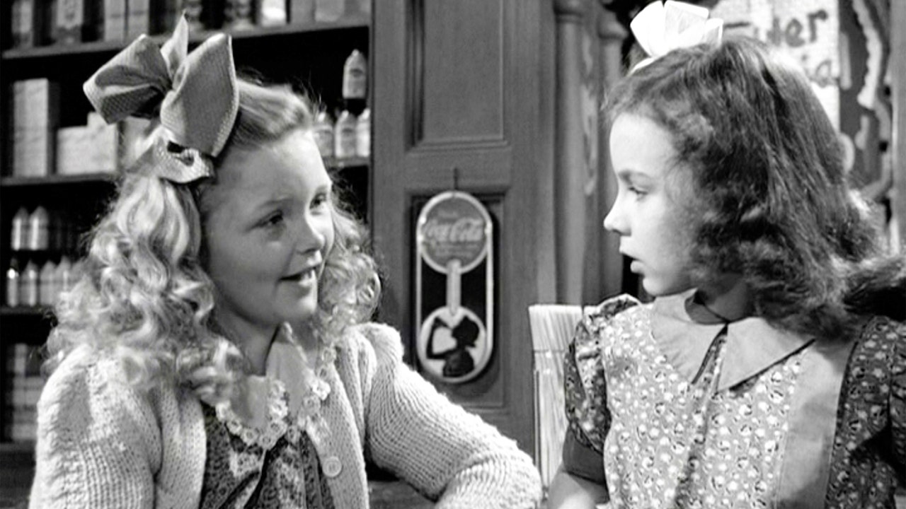 The movie 'It's a Wonderful Life', produced and directed by Frank Capra. Seen here from left, Jeanine Ann Roose as Little Violet Bick and Jean Gale as Little Mary Hatch. (Photo by CBS via Getty Images)