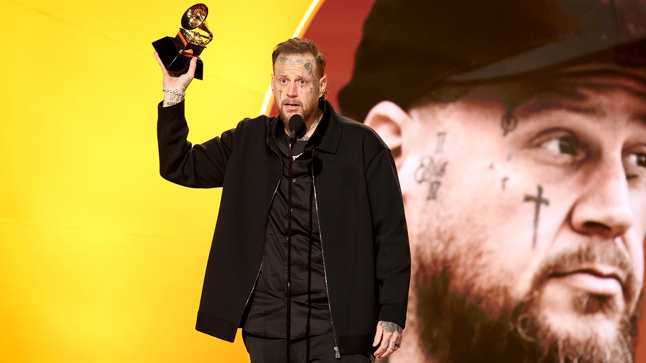 Jelly Roll accepted the award for Best Contemporary Country Album for "Beautifully Broken" onstage at the Grammys. (Kevin Mazur)
