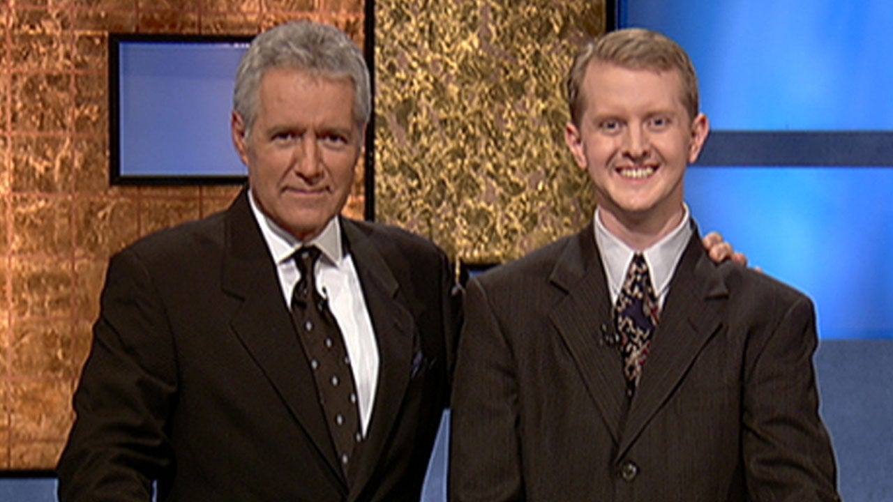 Alex Trebek and Ken Jennings met in 2004 when Jennings began his record-breaking winning streak on "Jeopardy!" (Jeopardy Productions via Getty Images)