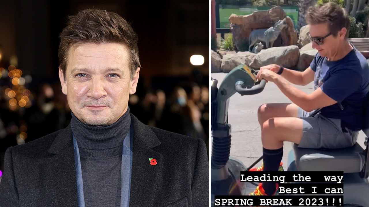 Jeremy Renner uses mobility scooter at theme park four months after near-fatal accident. (Instagram/Getty Images)