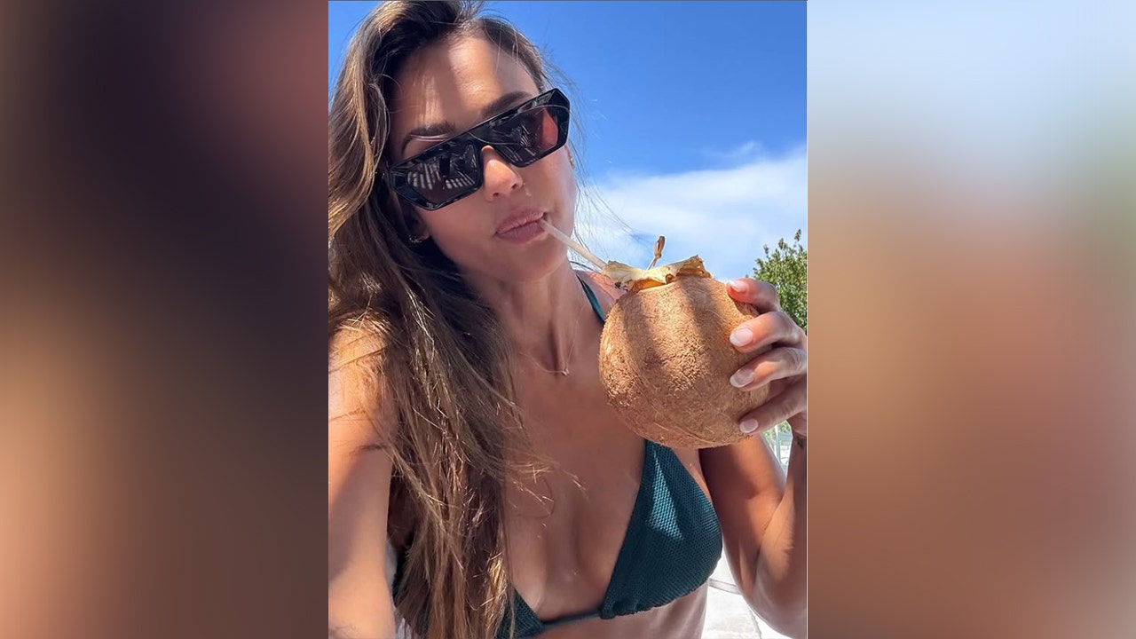 Jessica Alba shared a selfie on social media showing her sipping a drink out of a coconut while in a green bikini. (Jessica Alba Instagram)