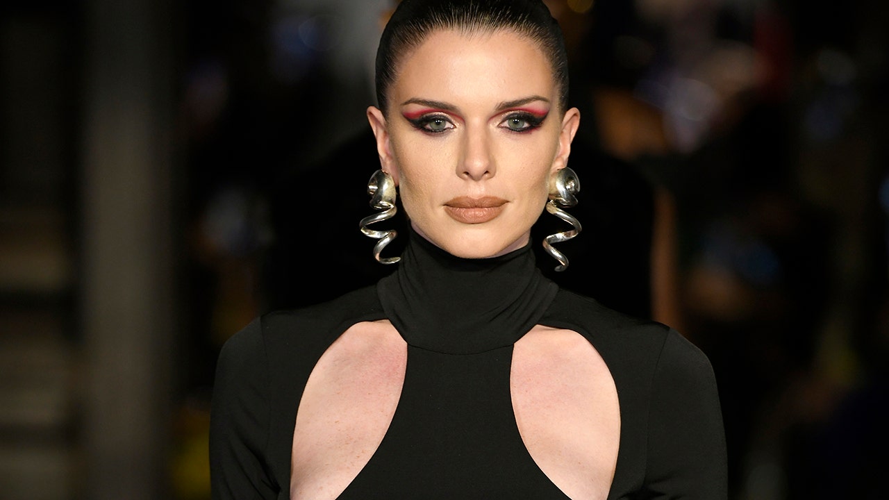 Julia Fox models the LaQuan Smith Fall/Winter 2022 collection at 60 Pine Street during New York Fashion Week on Monday, Feb. 14, 2022, in New York. (Charles Sykes/Invision/AP)