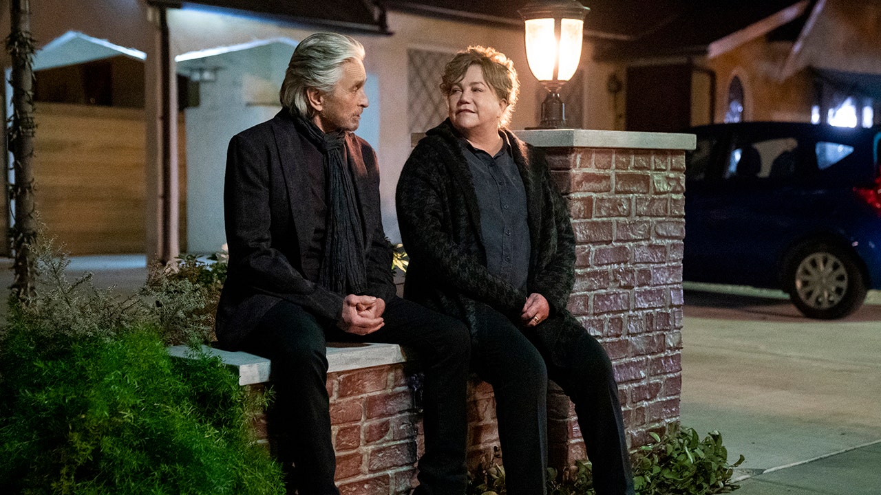 Michael Douglas, left, and Kathleen Turner in a scene from the third and final season of "The Kominsky Method." (Erik Voake/Netflix via AP)