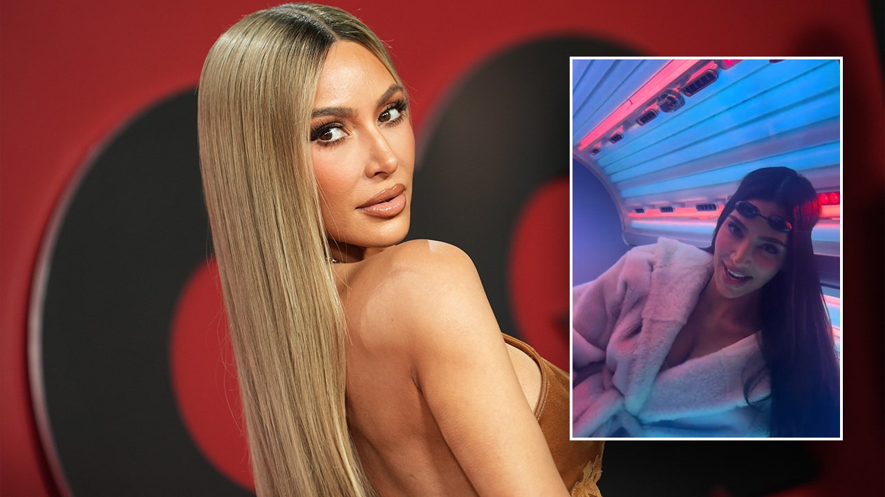 Kim Kardashian defends having a tanning bed in her office after sparking mixed reactions online. (Getty Images/Kim Kardashian/TikTok)