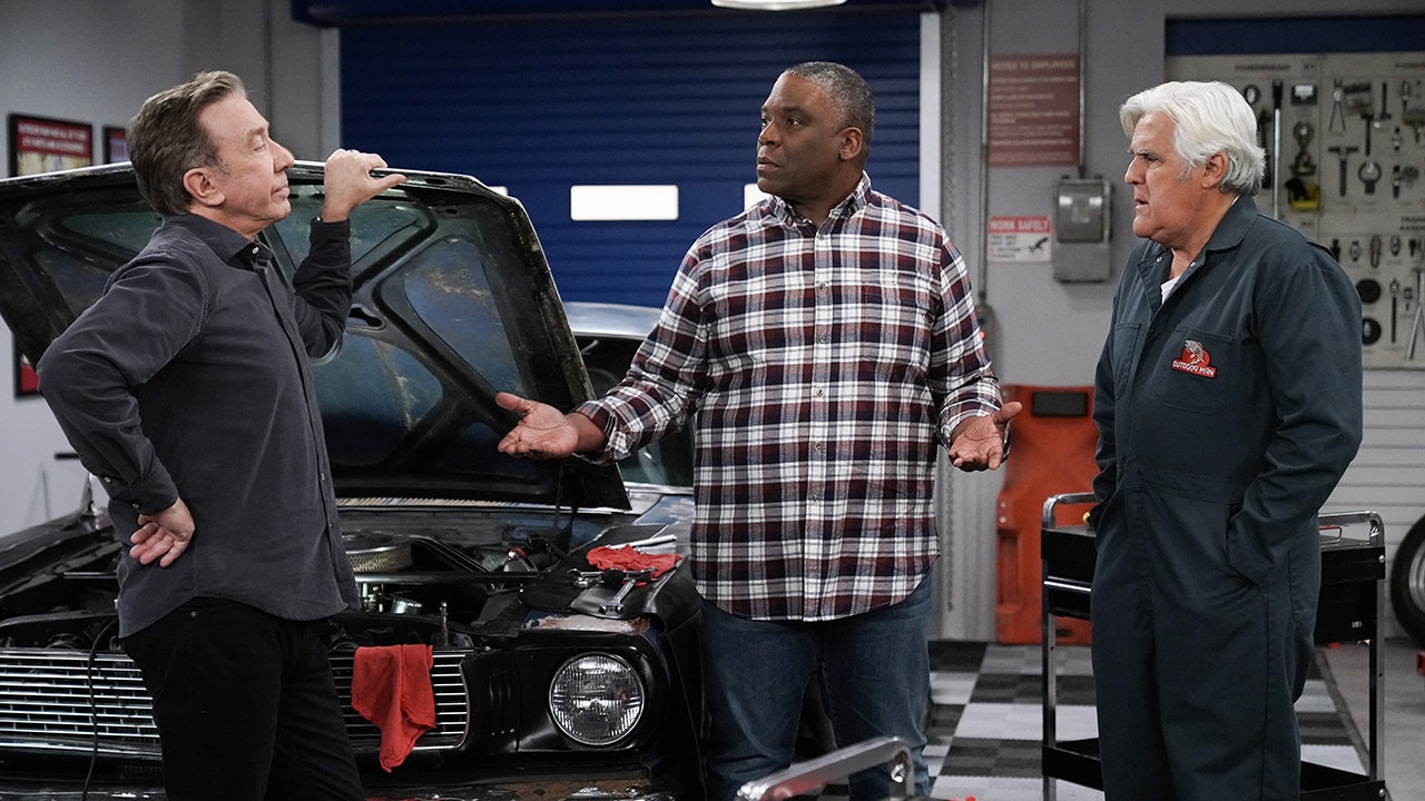 L-R: Tim Allen, Jonathan Adams and guest star Jay Leno in an episode from "Last Man Standing." (Michael Becker/FOX. © 2021 FOX Media LLC)