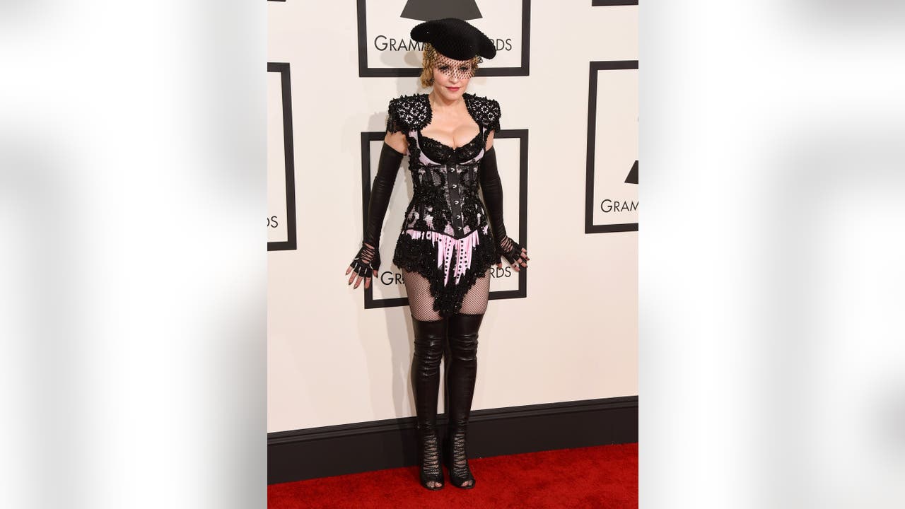 The 56-year-old pop star, at the Grammys to perform her new single “Living for Love,” arrived on the red carpet sporting a matador-themed get-up designed by Givenchy. The ensemble pushed her bosom to the sky, but it was the flap in the back — which Madge playfully showed off — that really stole the show.