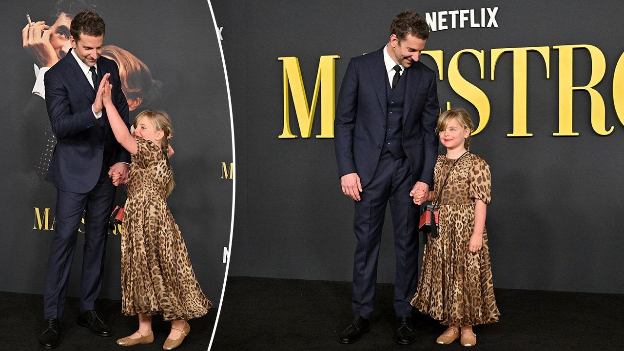 Bradley Cooper was accompanied by his 6-year-old daughter Lea on the carpet for the premiere of "Maestro." (Getty Images)