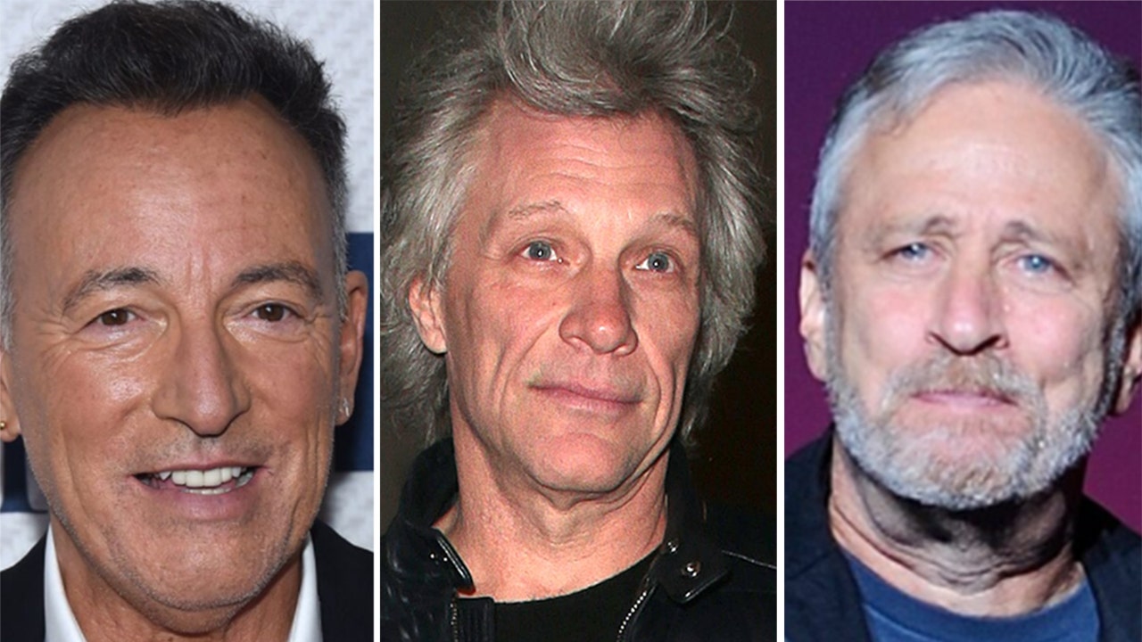 Bruce Springsteen, Jon Bon Jovi and Jon Stewart have joined forces for an important coronavirus safety message. The three now appear on 30 billboards throughout their home state of New Jersey. (AP/Getty/AP)