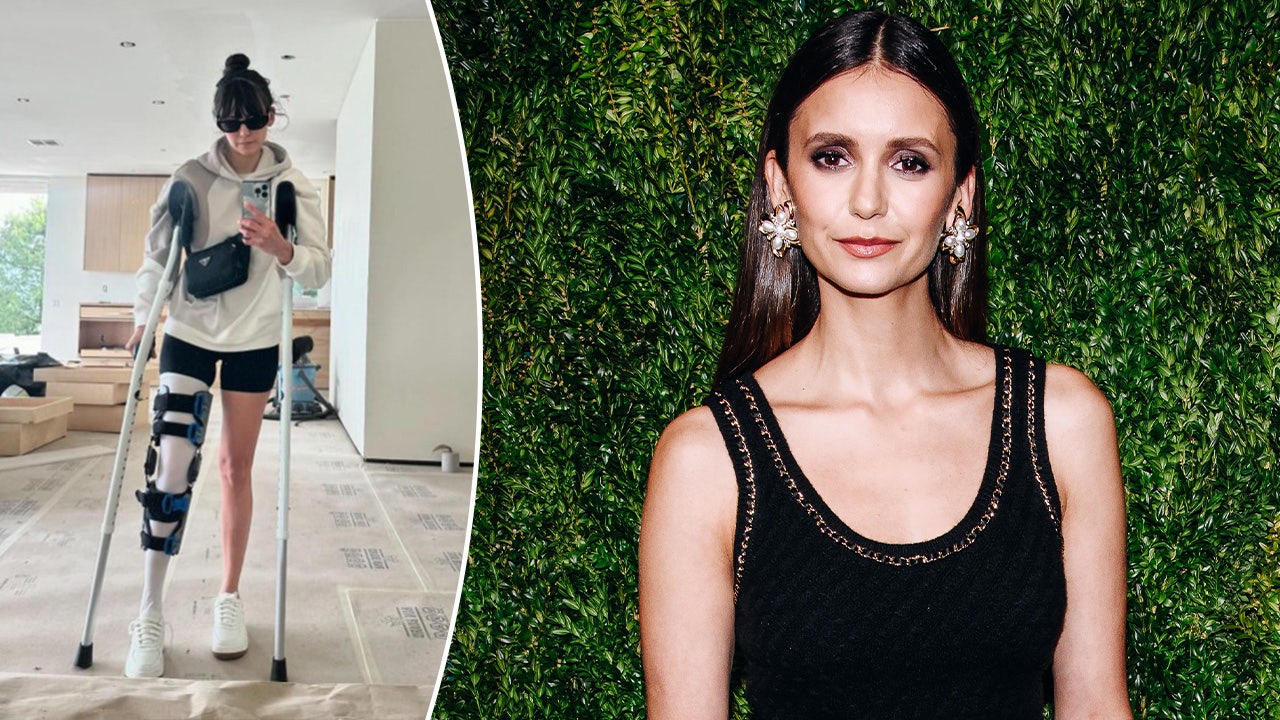 Nina Dobrev injured her leg during a bike accident in May. (Instagram/Getty Images)