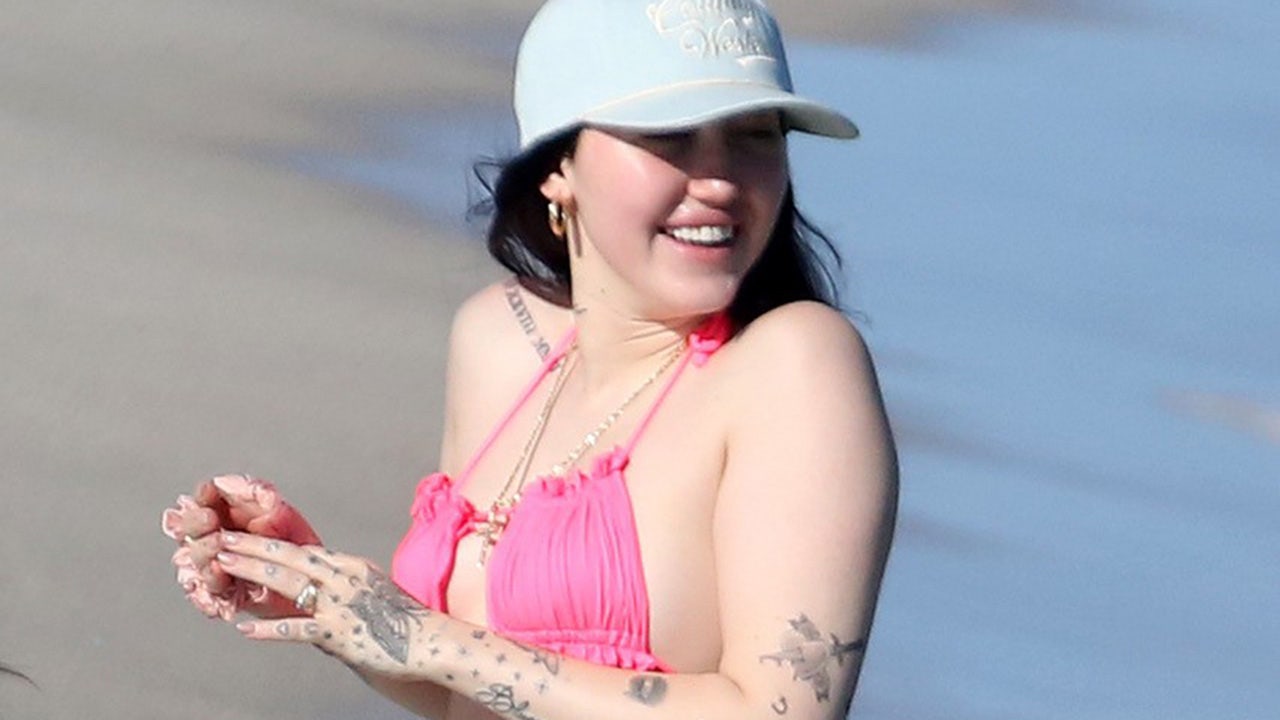 Noah Cyrus sizzled in a hot pink bikini on a Miami beach. (Mega)