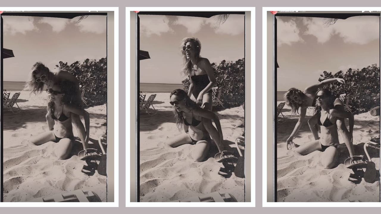 Olivia Wilde got playful on the beach with her friend Molly Howard. (Olivia Wilde/Instagram)