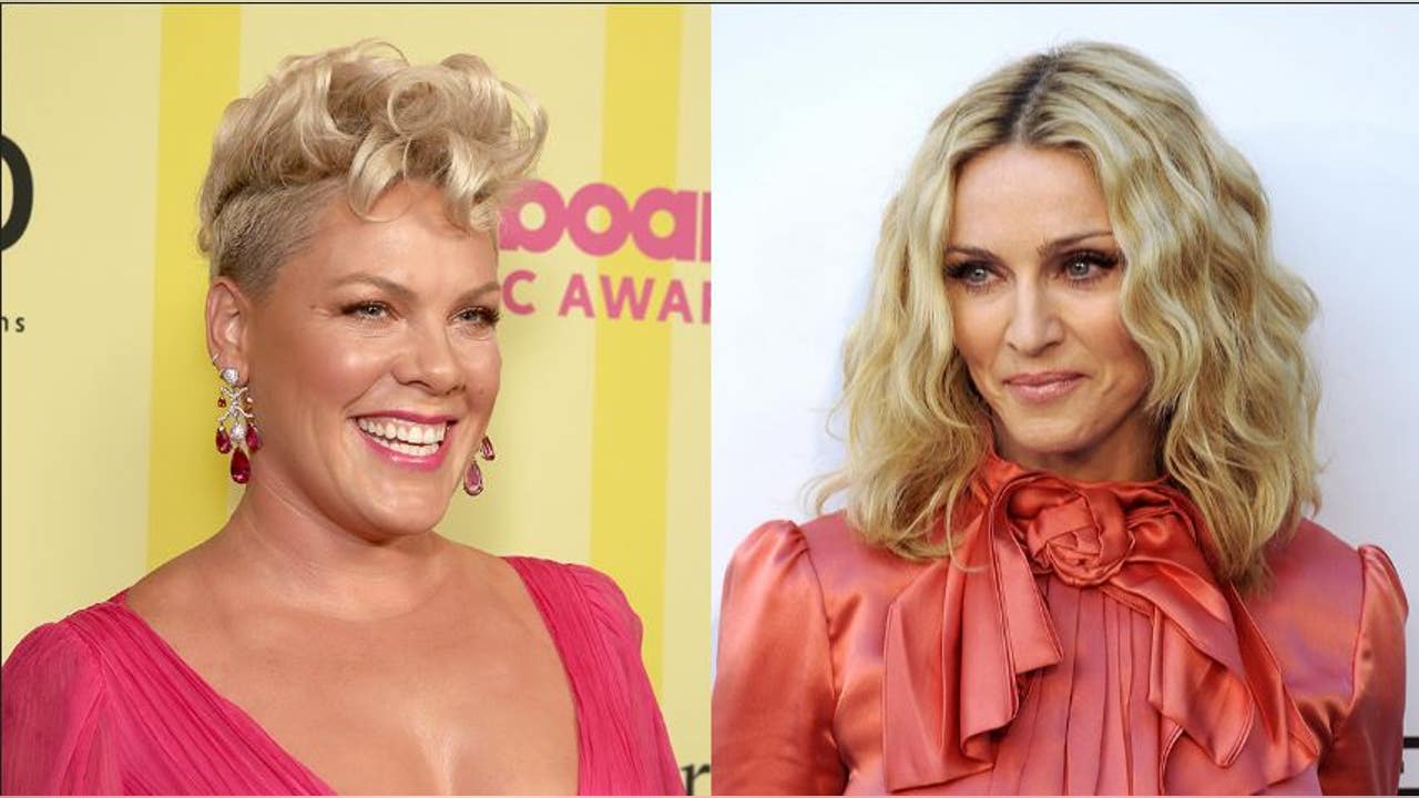 Pink, left, said that "it didn't work out" between herself and "inspiration" Madonna after she made a joke on "Regis and Kelly" in 2003 about Madonna wanting to meet her, not the other way around. (Todd Williamson/NBC/NBCU Photo Bank/FRED DUFOUR/AFP)