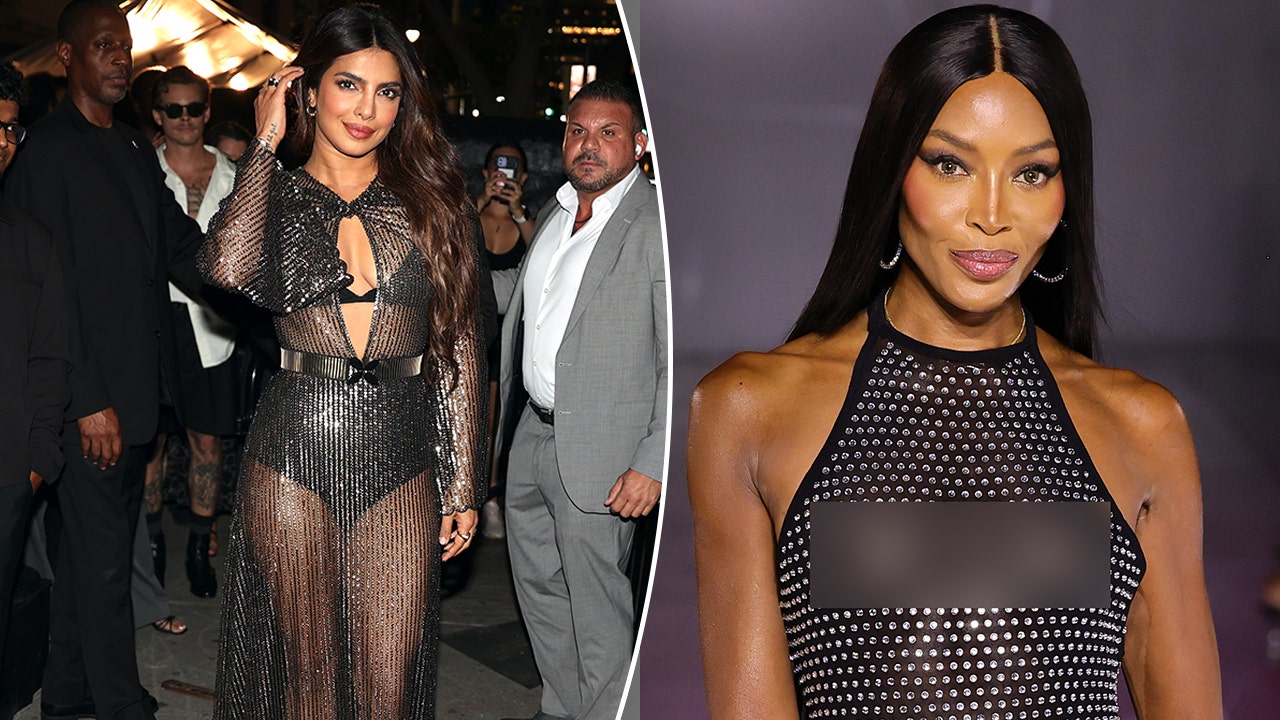 Priyanka Chopra opted for a sheer black dress when attending a celebration for Victoria's Secret. (Getty Images)