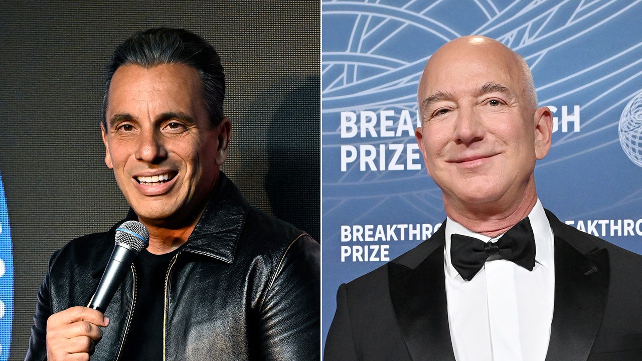 Sebastian Maniscalco poked fun at Amazon founder Jeff Bezos' physical transformation throughout the years. (Getty Images)