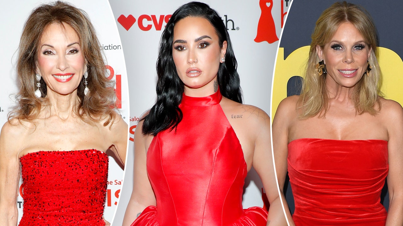 Demi Lovato wore two different red looks to the American Heart Association’s Go Red for Women Red Dress Collection Concert. (Getty Images)
