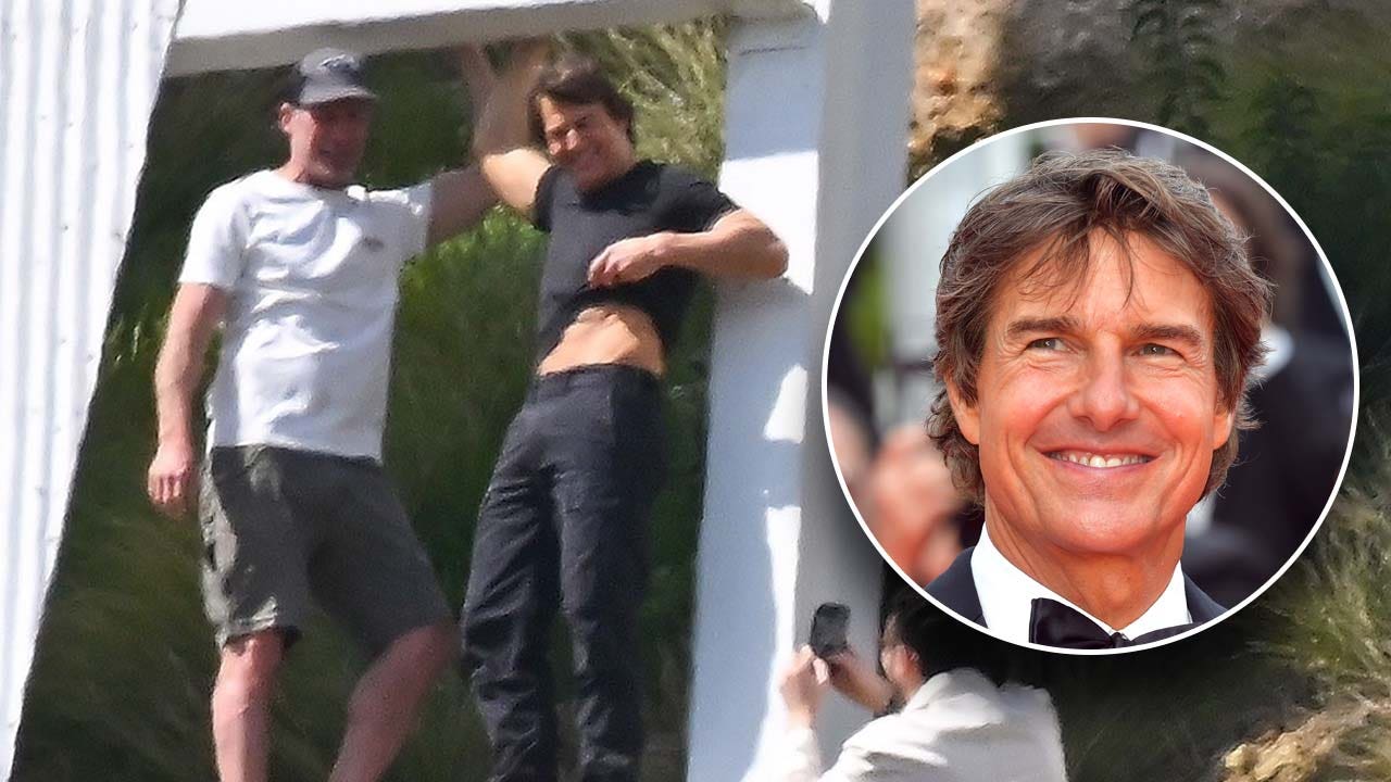 Tom Cruise flashed his abs and appeared ready to film another death-defying stunt on Saturday in Los Angeles. (Backgrid/Getty Images)