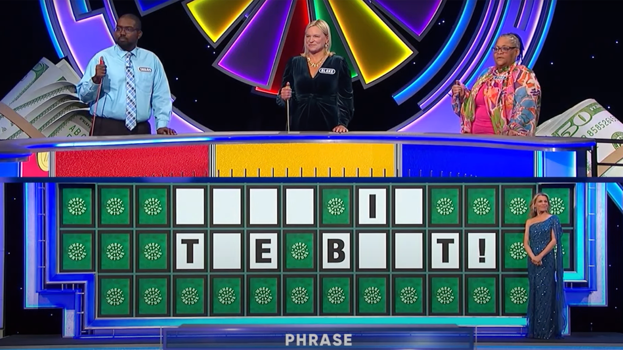 Vanna White, as always, was on hand to reveal part of the phrase. The board read: _ _ _ _ /I _ /T _ E /B _ _ T!