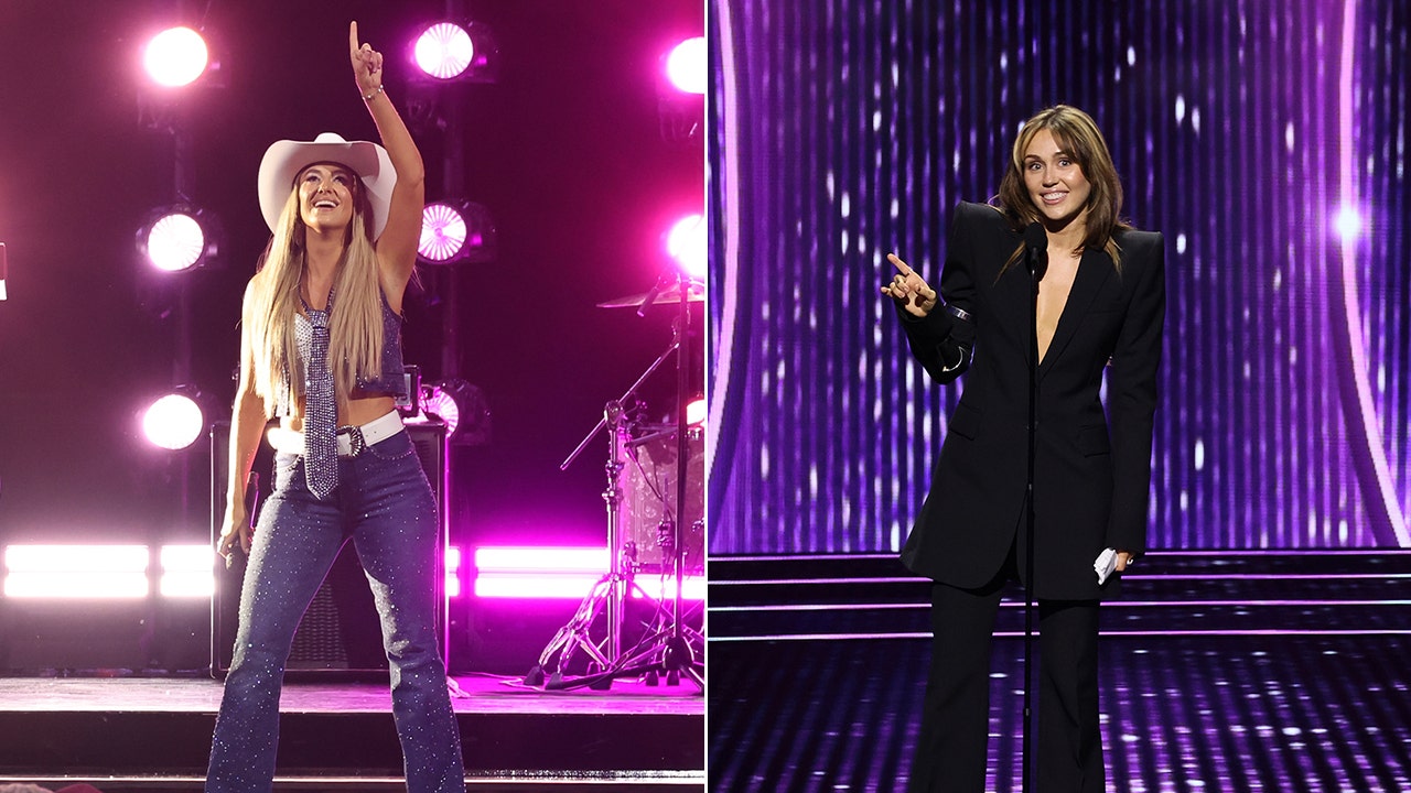 "Miley, you might not know this, but I am truly one of your biggest fans," the "Watermelon Moonshine" singer said at the event in a video obtained by Entertainment Tonight. "My very first job was taking my portable sound system and a wig and 15 tracks I learned from back to back and… and impersonating Hannah Montana. I'm talking about birthday parties, fairs, festivals, you name it. It was me, Lainey Wilson, opening up for me, as Hannah Montana."
