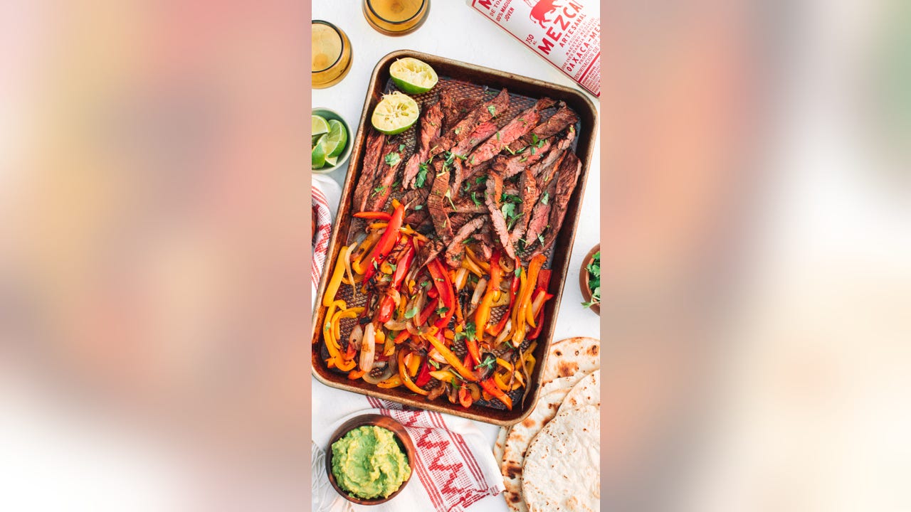 She continues, "Tender skirt steak marinated in a rich mezcal-citrus blend, charred to perfection, and served alongside all of the classic fajita accoutrements."